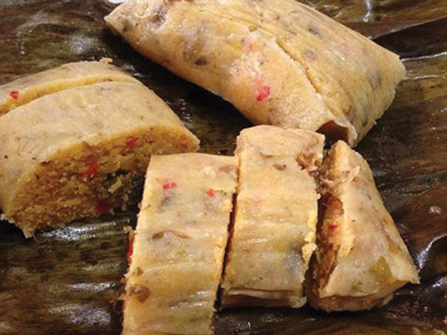 (Venezuelan Tamales) made out of corn masa, and stuffed with a delicious stew of vegetables, olives, capers, pork, chicken and beef. Also vegetarian available upon request.